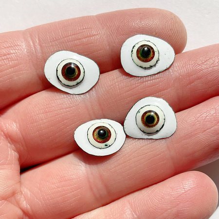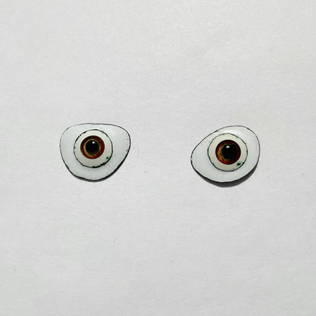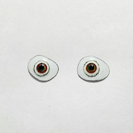 Пара эмалевых глаз "Творожный крем с брусникой", диаметр 10-14 мм. Необычные глазки свободной формы с вопросительным взглядом. Глазки-пуговички, выполненные в технике горячая эмаль - цветное стекло на медной основе. С обратной стороны металлическая петелька для пришивания.