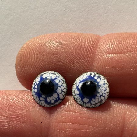 A pair of "Blueberry in Sugar Glaze" enamel eyes, 10 mm in diameter. A strong gaze. The button eyes are made using the hot enamel technique - colored glass on a copper base. A metal loop for sewing on the back.