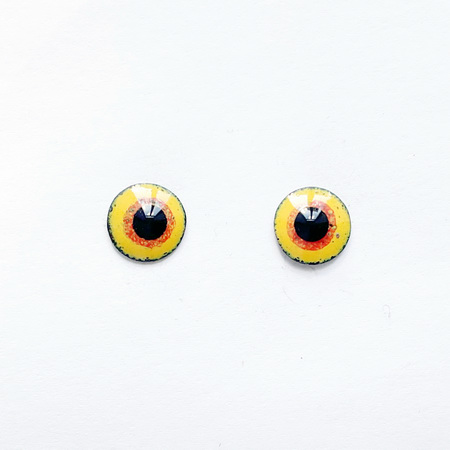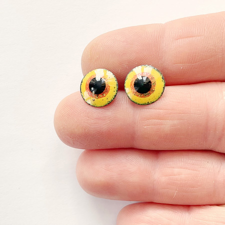 A pair of enamel eyes, "Chocolate Bar with Dried Apricots and Candied Fruit," 11 mm in diameter. The eyes have a bright gaze. The button eyes are made using the hot enamel technique - colored glass on a copper base. A metal loop for sewing on the back.