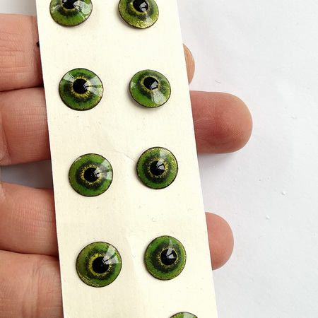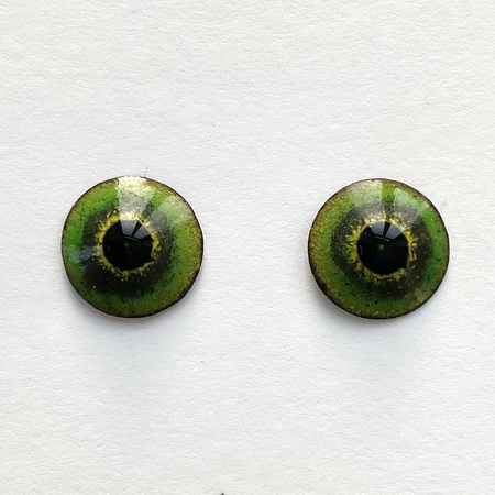 A pair of "Citrus Sherbet" enamel eyes, 11 mm in diameter. A piercing gaze. The button eyes are made using the hot enamel technique - colored glass on a copper base. A metal loop for sewing on the back.