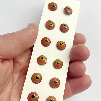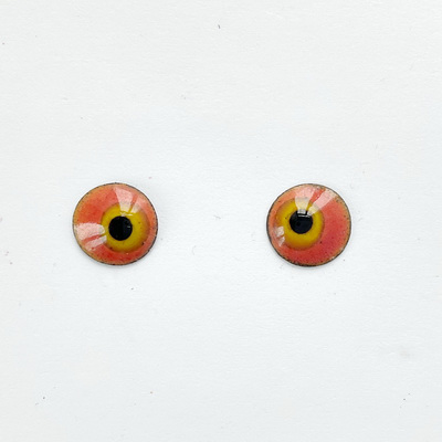 A pair of enamel eyes, "Cranberry Juice with Honey," 10 mm in diameter. These eyes have a sweet look. The button eyes are made using the hot enamel technique - colored glass on a copper base. There's a metal loop on the back for sewing on.
