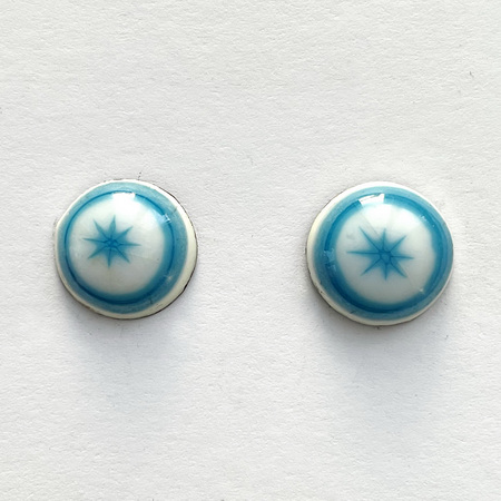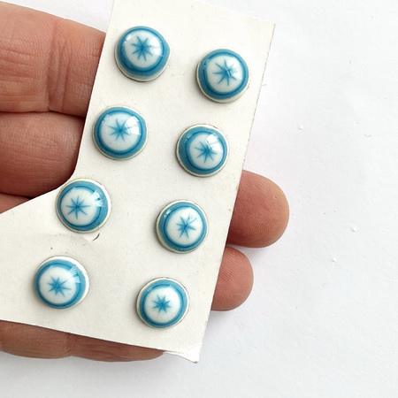 A pair of "Creamy Mousse with Blueberries" enamel eyes, 10 mm in diameter. The eyes are made with Venetian glass and feature a radiant gaze. The button eyes are made using the hot enamel technique - colored glass on a copper base. A metal loop for sewing on the back is attached.