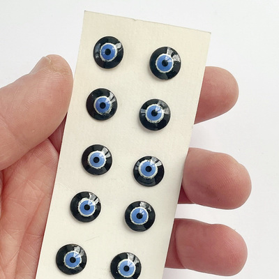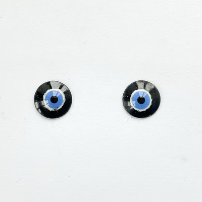 A pair of enamel eyes, "Dark Chocolate with Blueberry Cream," 10 mm in diameter. These eyes have a bold look. The button eyes are made using the hot enamel technique - colored glass on a copper base. A metal loop for sewing on is on the back.