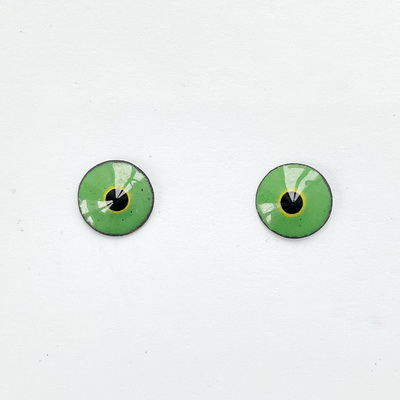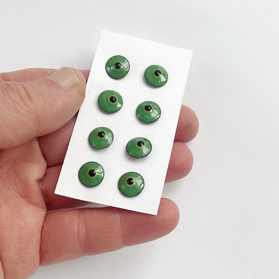 A pair of enamel eyes, "Kiwi Ice Cream with Lemon Zest," 10 mm in diameter. The eyes have a charming look. The button eyes are made using the hot enamel technique - colored glass on a copper base. A metal loop for sewing on the back.