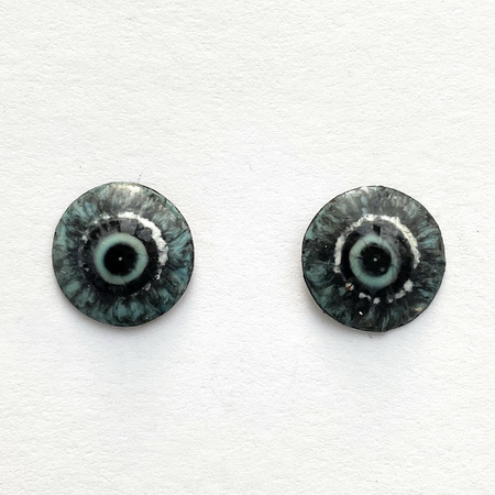 A pair of enamel eyes, "Marbled Cupcake with Sugar Icing," 11 mm in diameter. A hypnotic gaze. The button eyes are made using the hot enamel technique - colored glass on a copper base. A metal loop for sewing on the back.