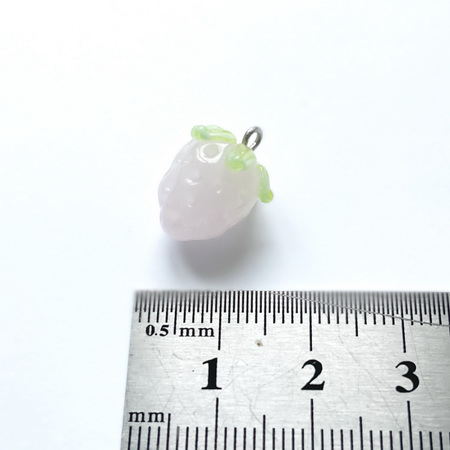 One strawberry glass bead from Catharsisglass. Size: 13 x 12 mm. A fun accessory for a handmade toy or a decorative accent.