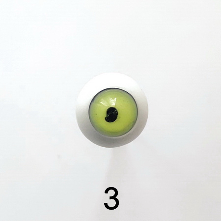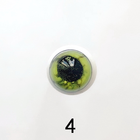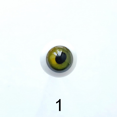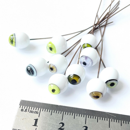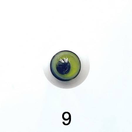One glass eye from the "Summer meadow" collection by CatharsisGlass. 9 mm-10 in diameter. Attached to a metal rod, which can be used to make a loop for sewing. Please specify the number of the eye you have chosen when ordering.