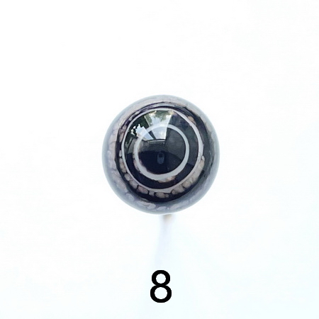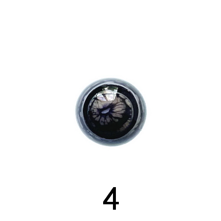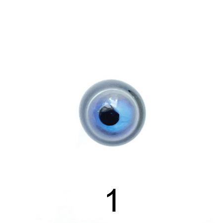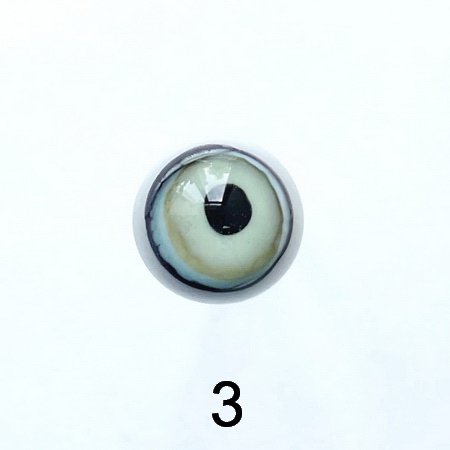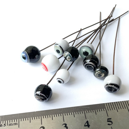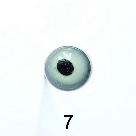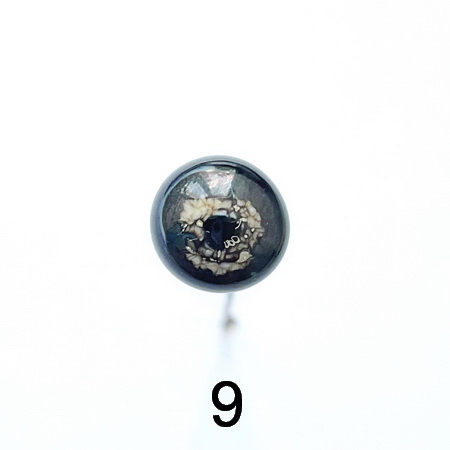 One glass eye from the "Winter morning" collection by CatharsisGlass. 9 mm -11 in diameter. Attached to a metal rod, which can be used to make a loop for sewing. Please specify the number of the eye you have chosen when ordering.