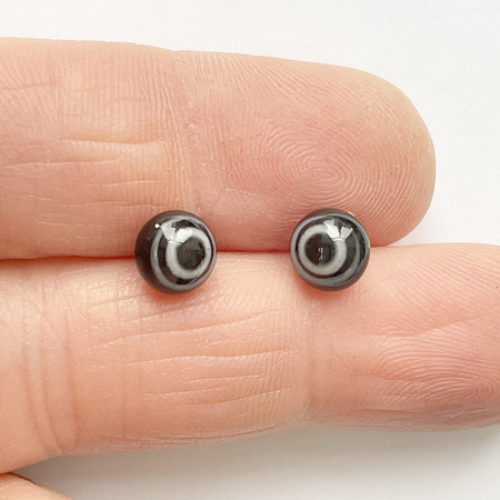 A pair of glass eyes "Blueberry jelly with milk sauce", diameter 7 mm. Surprised, delighted look. On the back there is a metal loop for fastening.
