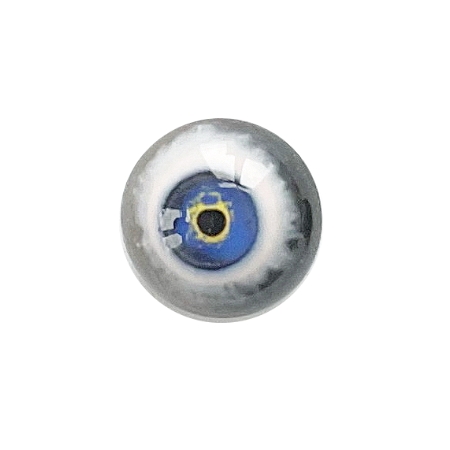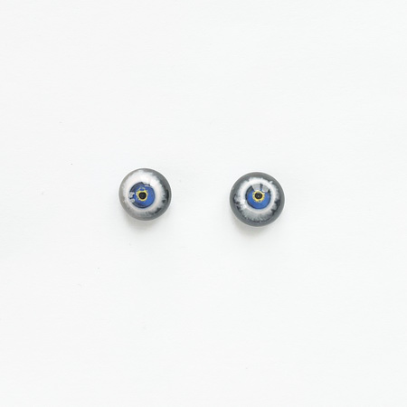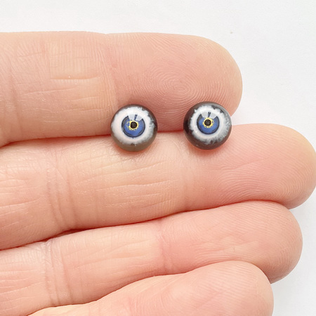 A pair of glass eyes, "Chocolate Cupcake with Cream and Blueberries," 8 mm in diameter. Expressive and eye-catching. A metal loop on the back for hanging.