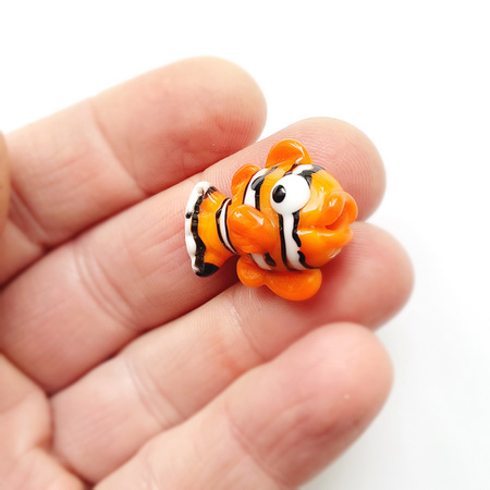 One glass fish bead from Catharsisglass. Size: 25 x 20 mm. A fun accessory for a handmade toy or a decorative accent.