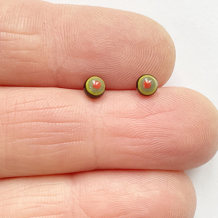 Пара стеклянных глаз "Брауни с фисташковым кремом и вишнями", диаметр 4 мм. Яркие теплые глазки с привлекательным взглядом. С обратной стороны металлическая петелька для крепления.