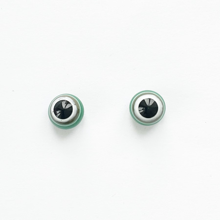 Пара стеклянных глаз "Яблочный мусс со сливками", диаметр 8 мм. Мечтательный взгляд. С обратной стороны металлическая петелька для крепления.