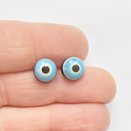 Пара стеклянных глаз "Желе из голубики с молочным щербетом", диаметр 9,5 мм. Трогательный яркий взгляд. С обратной стороны металлическая петелька для крепления.