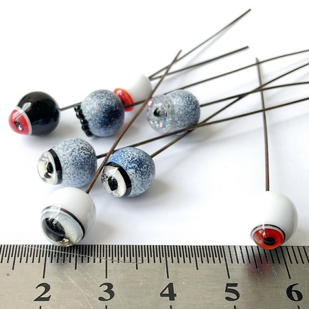 Один стеклянный глаз из коллекции "Сумерки" от катарсисгласс. Диаметр 9 мм, высота 11 мм. Надет на металлическую палочку из которой можно сделать петлю для пришивания. Пожалуйста при заказе указывайте номер\номера глаза, который вы выбрали.