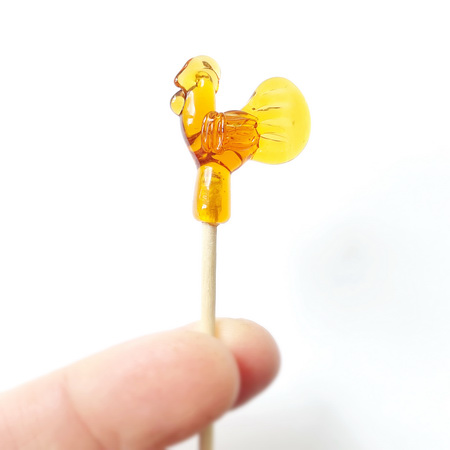 Петушок на палочке из стекла от катарсисгласс. Размер без палочки 28 на 23 мм. Веселый аксессуар для авторской игрушки или акцент для украшения.